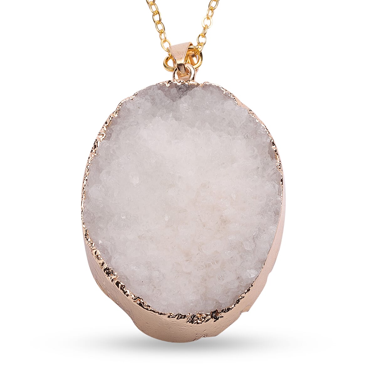Check out this enthralling drusy quartz pendant necklace that exudes a soul calming vibe effortlessly. Finely crafted in stainless steel, this fine specimen of contemporary jewelry art deserves to be adored for its enthralling appeal. Make sure that you don't miss out on this one.