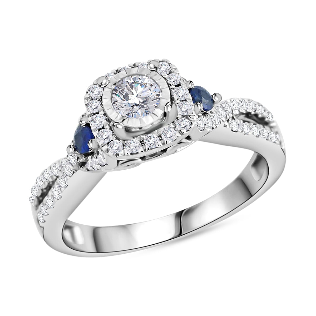 G-H SI Diamond and Blue Sapphire 0.50 ctw Infinity Ring in 10K White Gold (Size 8.0)