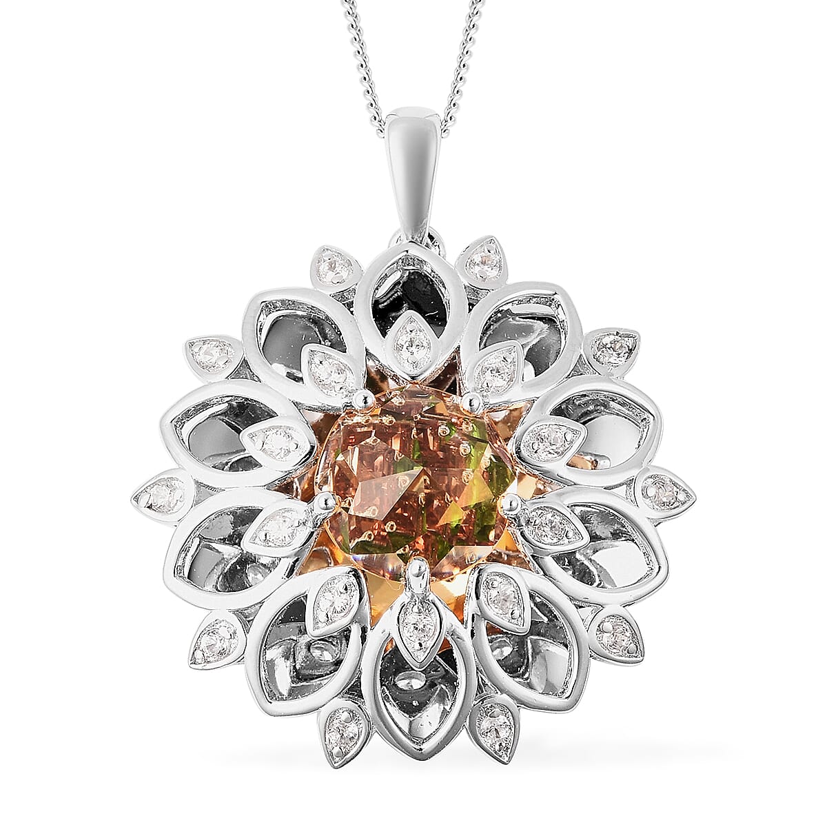 Galatea DavinChi Cut Collection Brazilian Citrine and Multi Gemstone Pendant Necklace 18 Inches in Sterling Silver 9.90 Grams 3.50 ctw