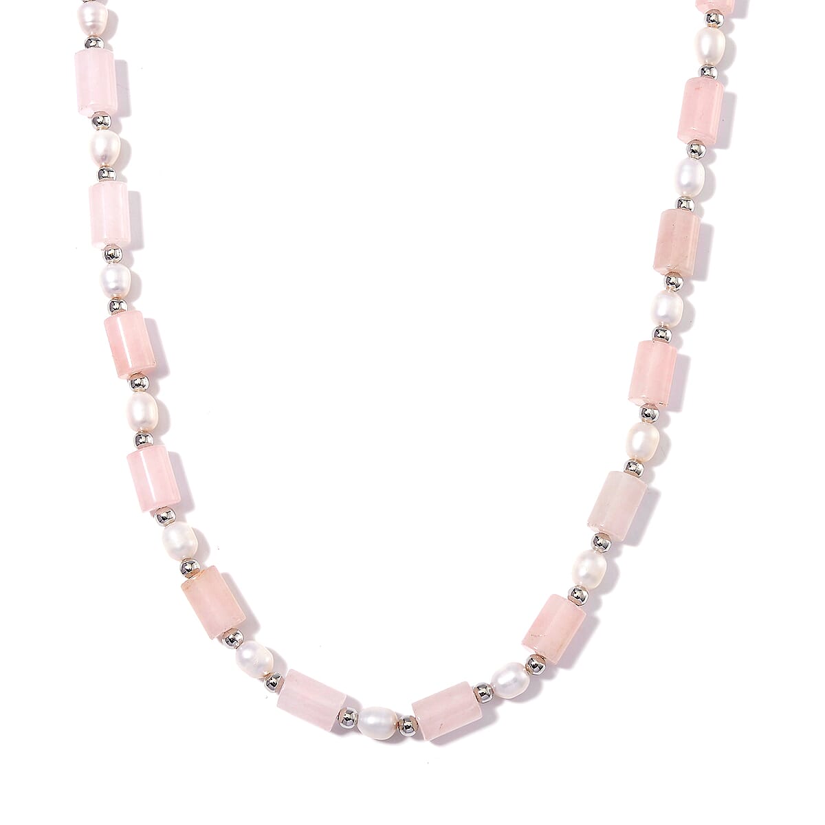 Galilea Rose Quartz 100.00 ctw and Freshwater Pearl Necklace in Silvertone 18-20 Inches