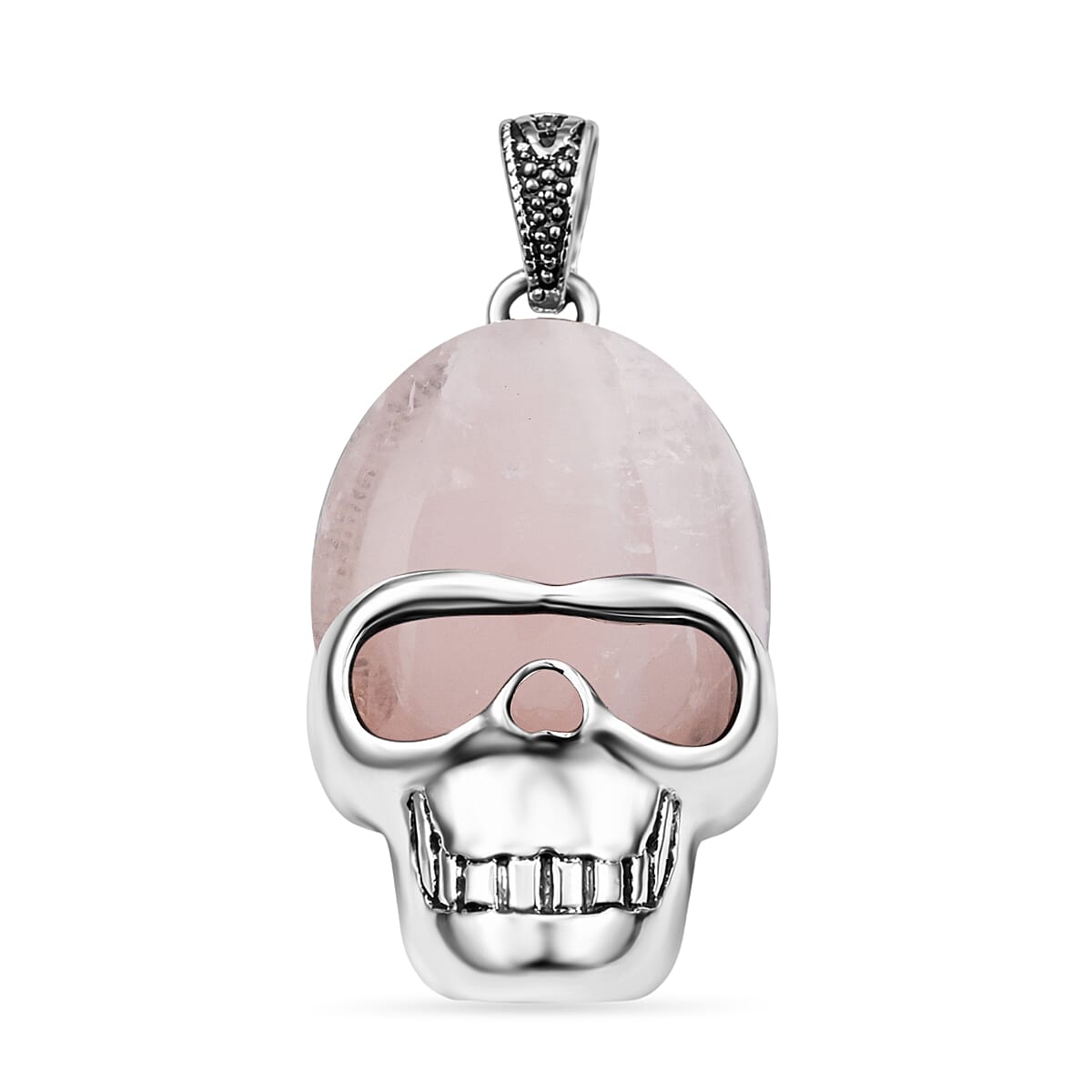 Galilea Rose Quartz 16.50 ctw Skull Pendant in Silvertone with Stainless Steel Necklace 20 Inches