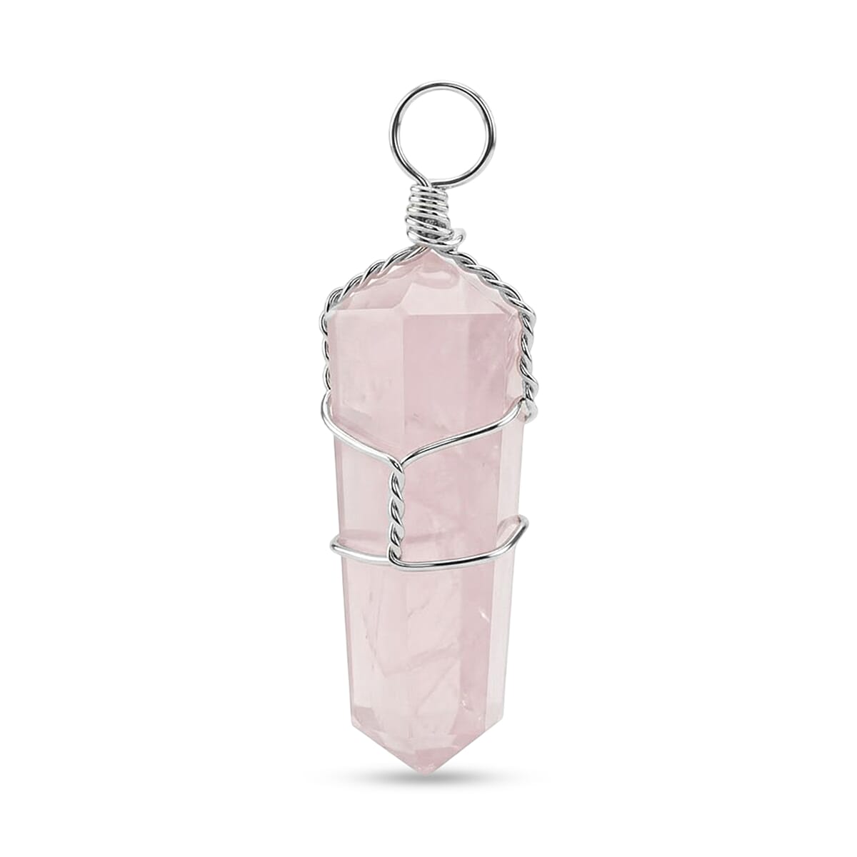Galilea Rose Quartz 18.00 ctw Taper Point Pendant in Silvertone with Stainless Steel Necklace (20 Inches)