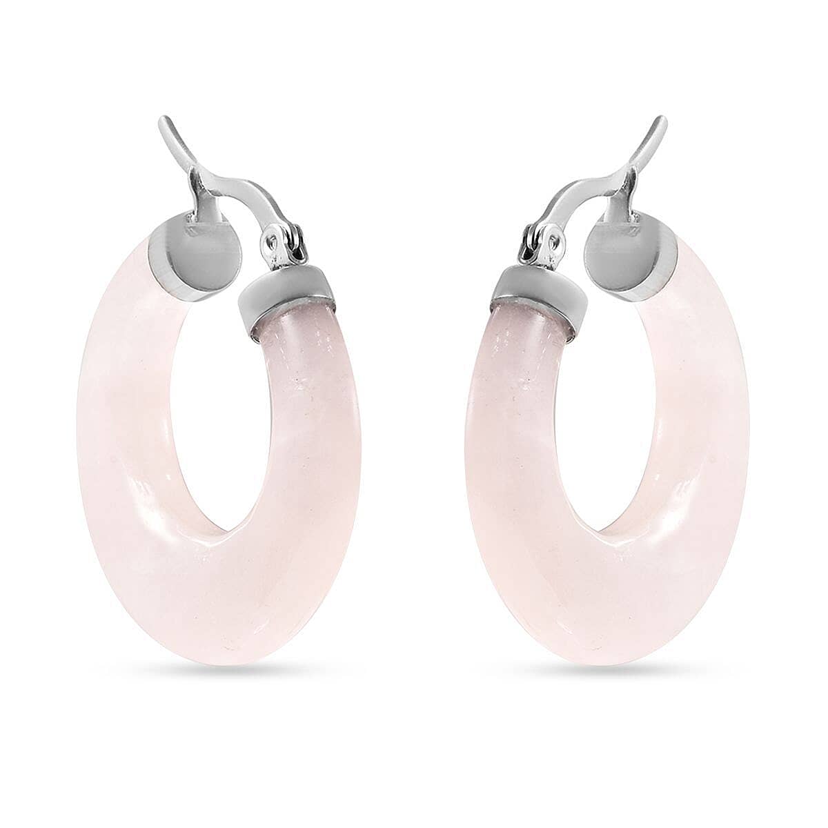 Galilea Rose Quartz 43.00 ctw Hoop Earrings in Stainless Steel