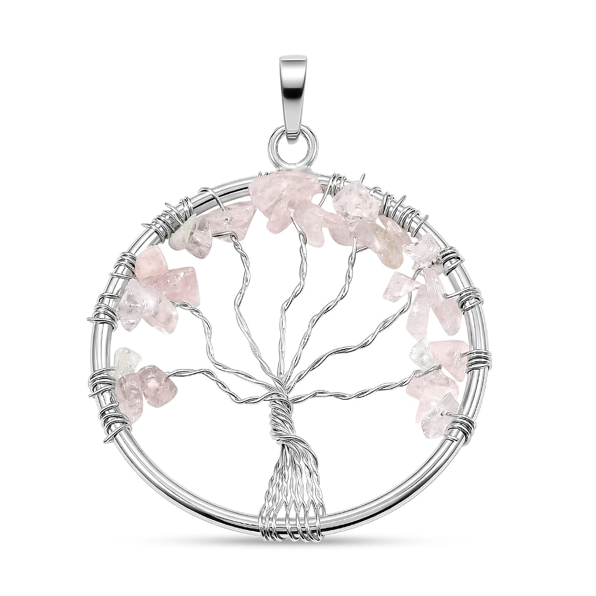 Galilea Rose Quartz 5.25 ctw Tree of Life Pendant in Silvertone with Stainless Steel Necklace (20 Inches)