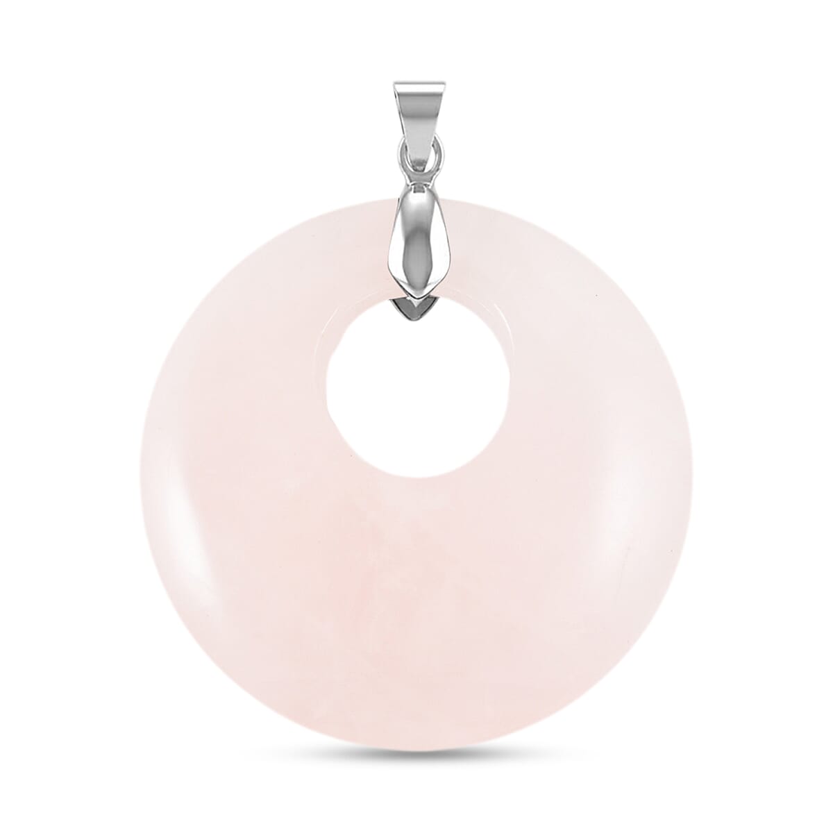 Galilea Rose Quartz 50.20 ctw Donut Pendant in Silvertone with Stainless Steel Necklace (20 Inches)