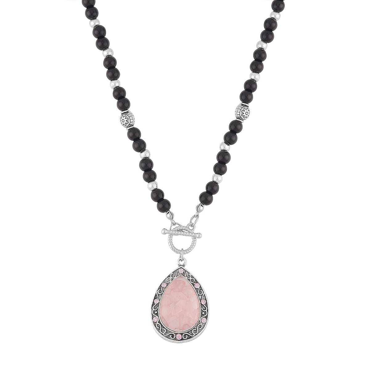 Make a statement with our stunning multi gemstone statement necklace! This 30-inch beads necklace features a beautiful pear-shaped pendant that showcases an array of vibrant gemstones. The toggle clasp necklace is easy to wear and adds a touch of sophistication to any outfit. The black beads are accented with metal beads that create a unique and distinct appeal. The glass pendant is surrounded by smooth scrolls and sparkling crystal rounds, making it the perfect women's necklace for any occasion. Elevate your style game with this one-of-a-kind multi gemstone necklace!