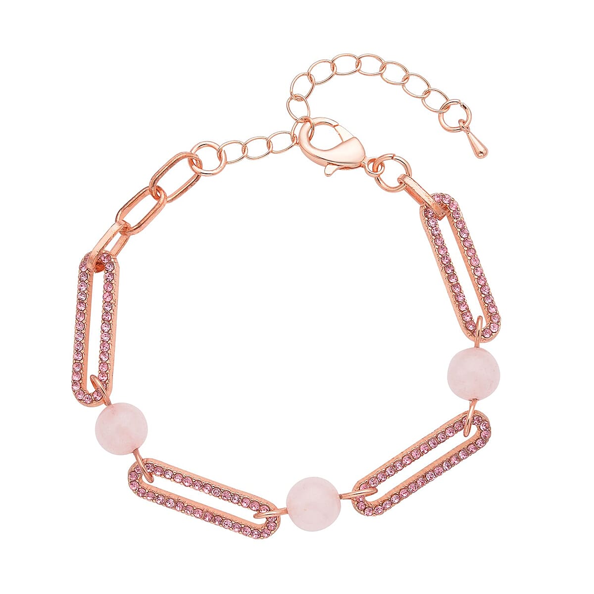 Galilea Rose Quartz and Pink Austrian Crystal Paper Clip Bracelet in Rosetone (7.50-9.50In) 10.00 ctw