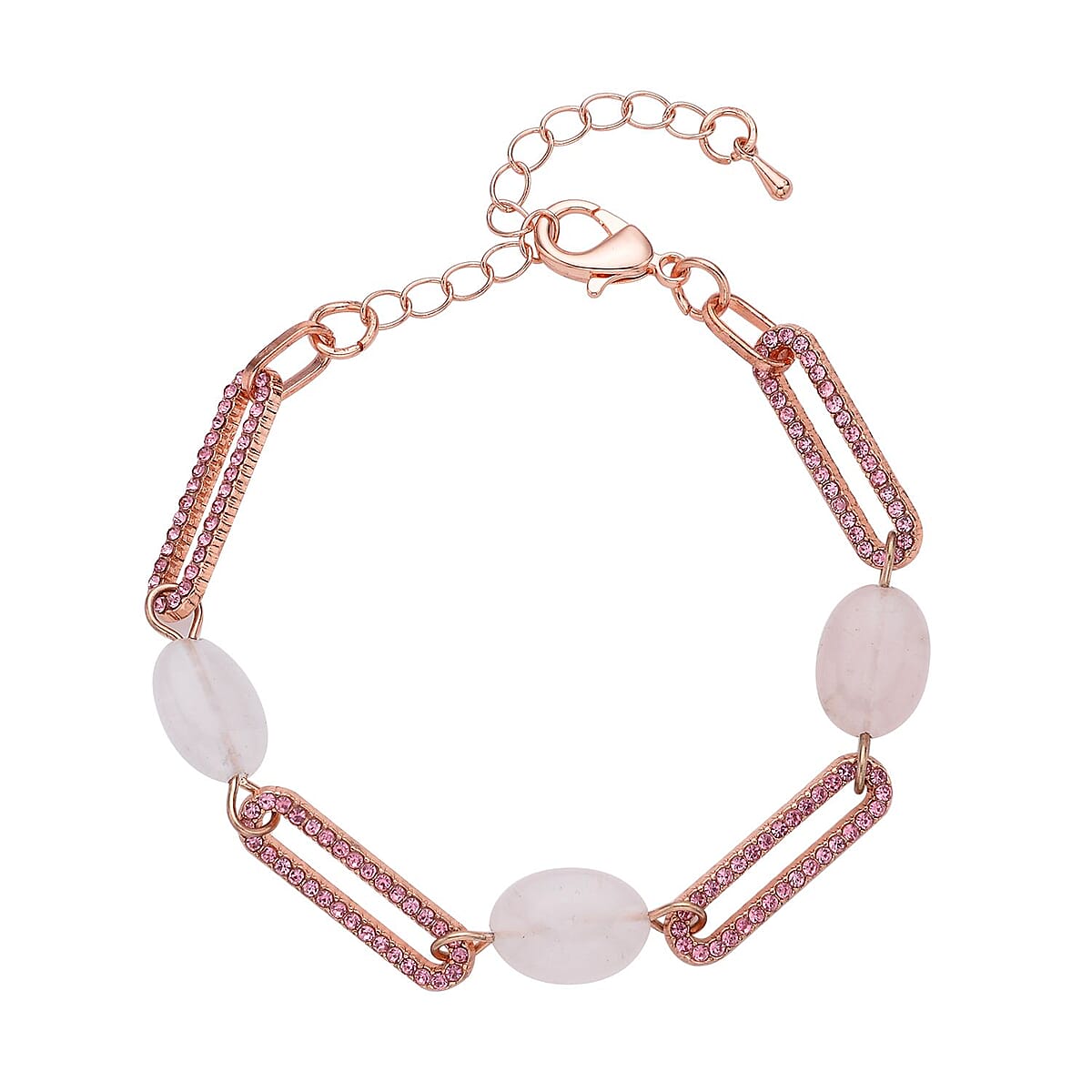 Galilea Rose Quartz and Pink Austrian Crystal Paper Clip Station Bracelet in Rosetone (7.50-9.50 Inches) 11.00 ctw