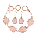 Galilea Rose Quartz and White Austrian Crystal Bracelet (6.50-8.0In) and Earrings in Rosetone 56.00 ctw