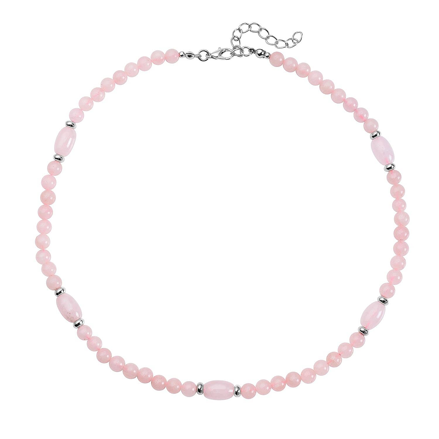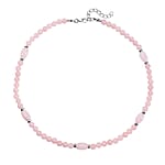 Galilea Rose Quartz Beaded Necklace 18-20 Inches in Silvertone 137.00 ctw
