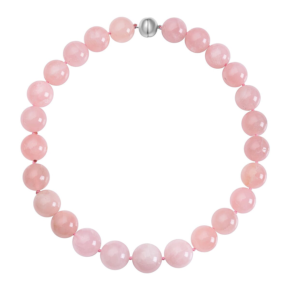 Galilea Rose Quartz Beaded Necklace 20 Inches with Magnetic Lock in Rhodium Over Sterling Silver 1107.50 ctw