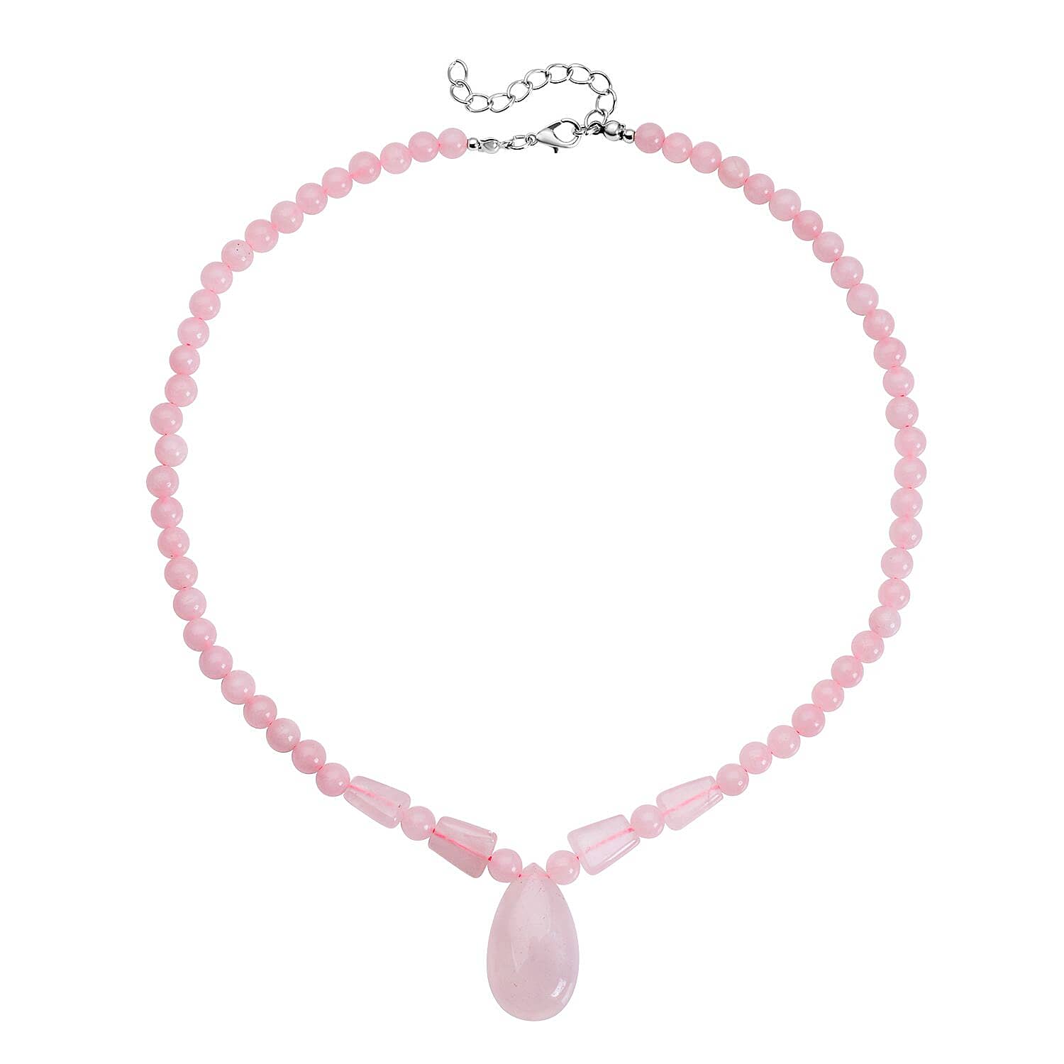 Galilea Rose Quartz Beaded Tribal Necklace 18-20 Inches in Silvertone 132.00 ctw