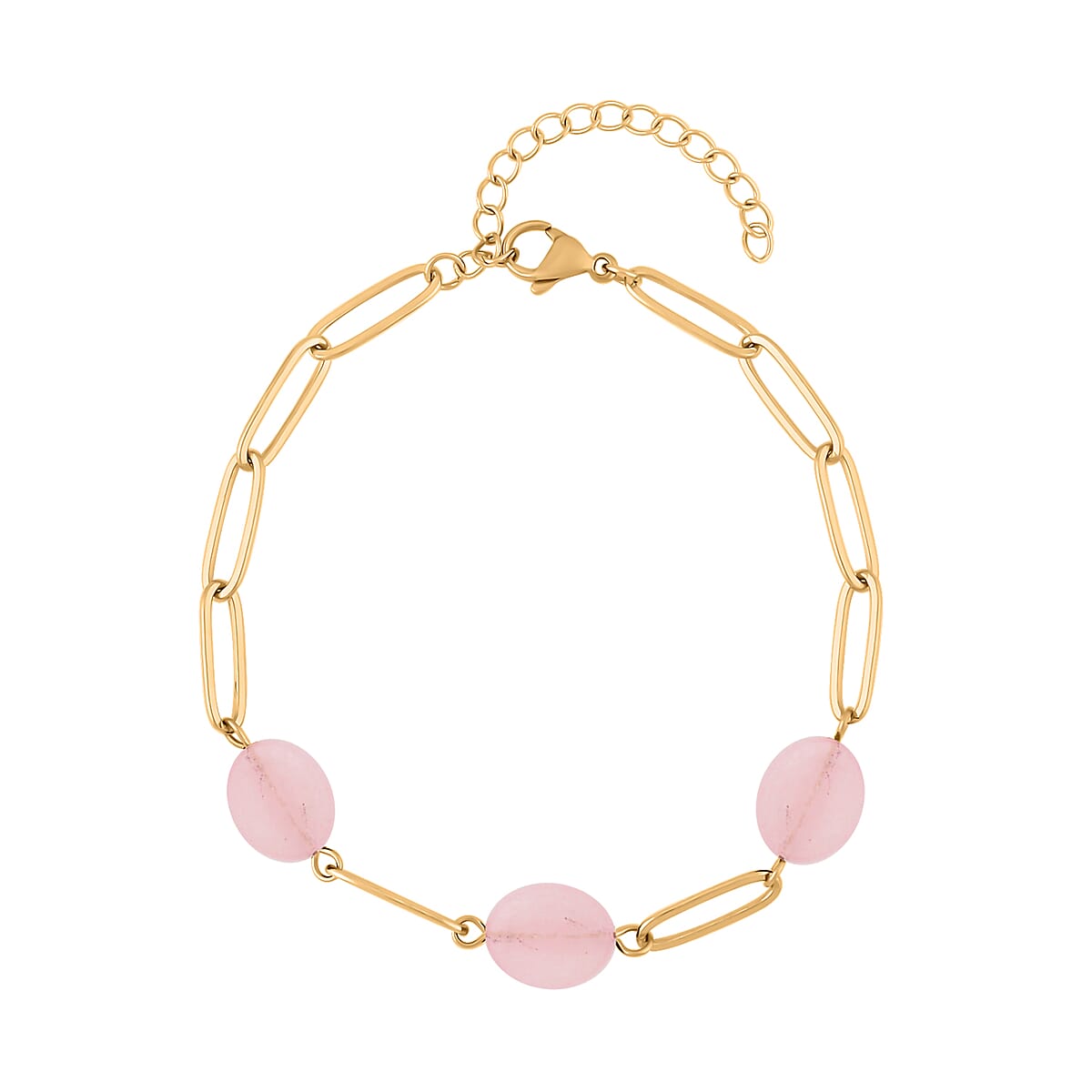 Galilea Rose Quartz Paper Clip Chain Station Bracelet in ION Plated YG Stainless Steel (7.50-9.50In) 18.00 ctw , Tarnish-Free, Waterproof, Sweat Proof Jewelry