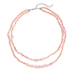Galilea Rose Quartz, Pink and Champagne Glass Beaded Two Row Necklace (18-20 Inches) in Stainless Steel 50.00 ctw