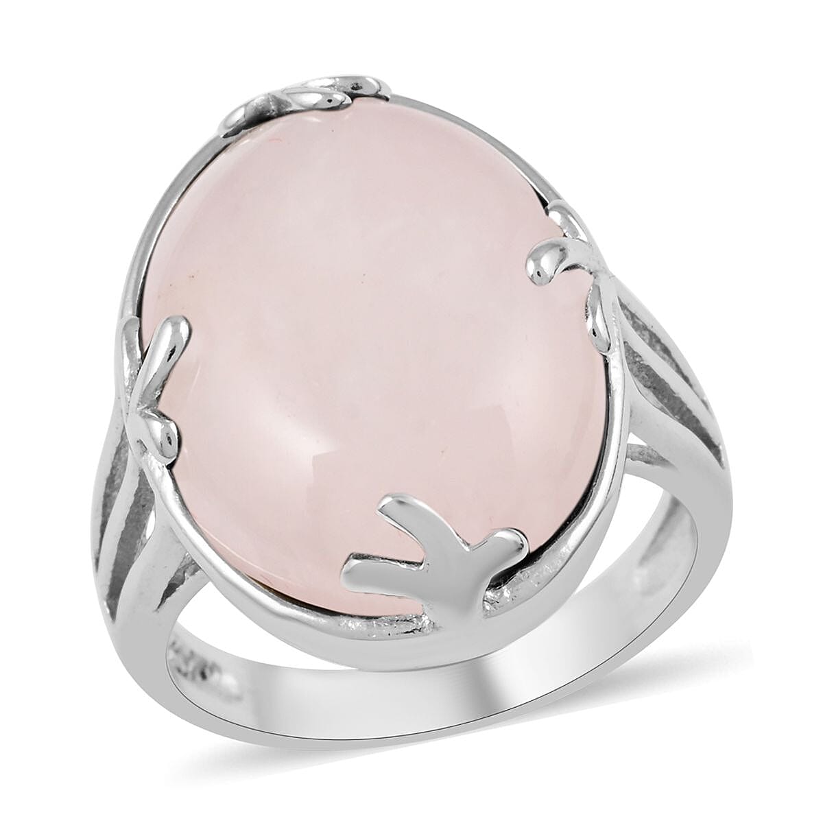 Galilea Rose Quartz Ring in Rhodium Over Stainless Steel (Size 9.0) 18.00 ctw