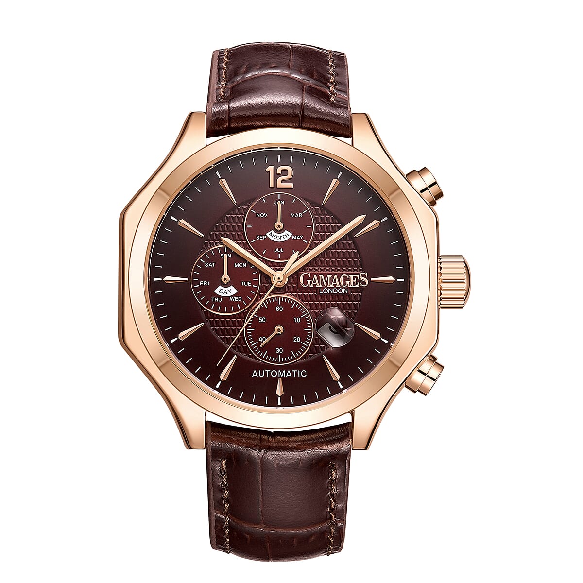 Date Window, Scratch Resistant, Hand Assembled, Day/Date/Month & 60 Seconds Counter |