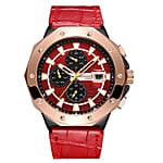 Gamages of London Limited Edition Hand Assembled Military Sports Automatic Movement Red Genuine Leather Strap Watch in RG ION Plating (45mm)