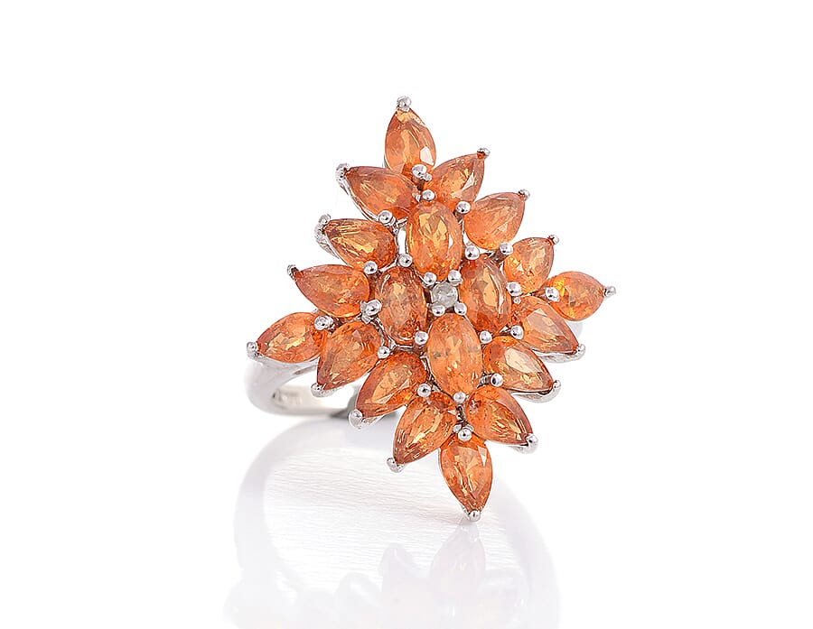 Throughout the ages garnets have been one of the most coveted and popular gems because of their classic and magnificent colors. The word garnet originates from the Latin word "garanatus " meaning "seed like " referring to the richly colored pomegranate fruit. While they share a common crystal make-up with diamond and spinel and similar refractive qualities garnets come from a separate group of minerals. Though several varieties of red garnet are present on every continent other types like this orange spessartite are sparse.