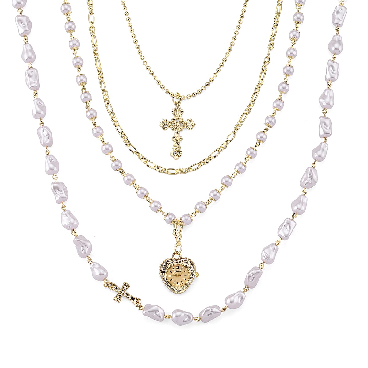 Genoa Austrian Crystal and Simulated Pearl Japanese Movement Pocket Watch with 4 Layer Chain (17, 24 and 34 Inches)