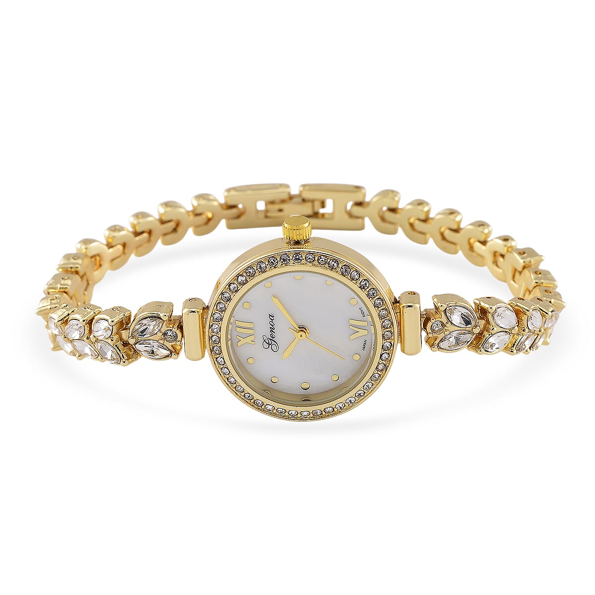 Genoa Austrian Crystal Japanese Movement MOP Dail Watch in Goldtone