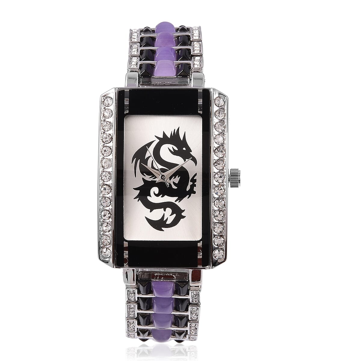 GENOA Austrian Crystal Miyota Japanese Movement Watch with Purple Jade Band and Stainless Steel Back in Silvertone 8.70 ctw