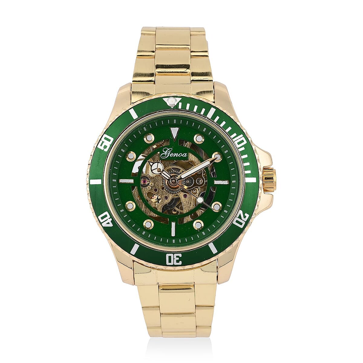 Genoa Automatic Mechanical Movement Green Dial Watch in ION Plated YG Stainless Steel Strap (42.40mm) (7.50 Inches)