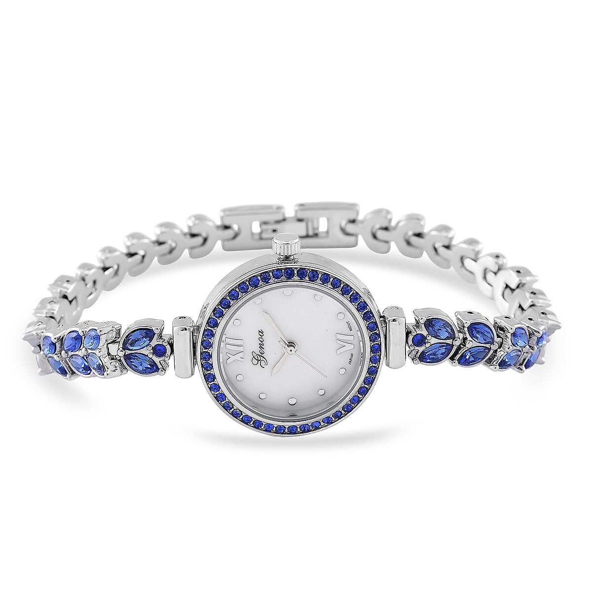Genoa Blue Austrian Crystal Japanese Movement Watch in Silvertone