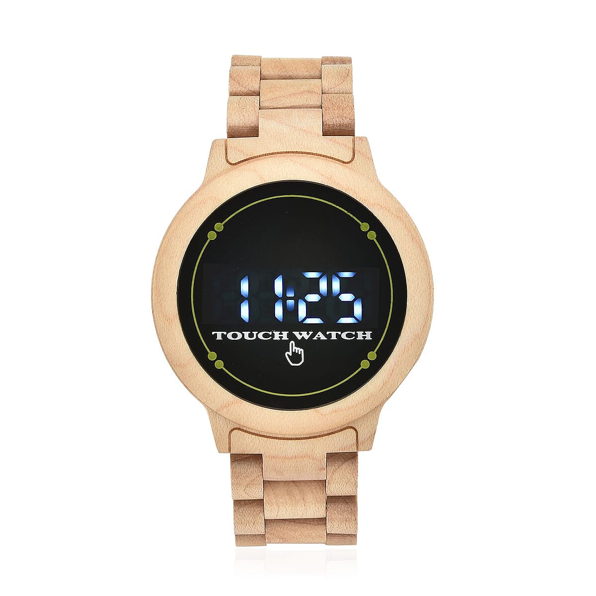 Genoa Electronic Movement LED Dial Watch with Maple Strap (44mm) (8.0 Inch)
