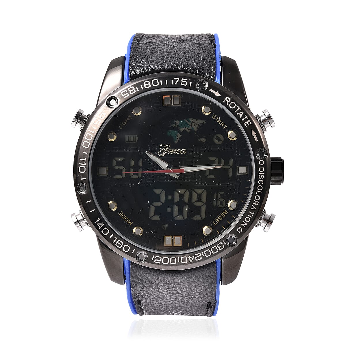 Genoa Japanese and China Movement Analog-digital Multi-functional Water Resistant Watch with Blue Plastic Leather Band and Stainless Steel Back