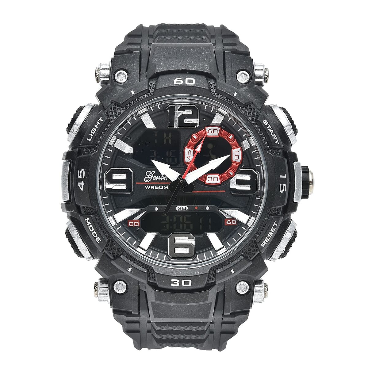 Genoa Japanese and Electronic Movement Multi Functional Black Dial Watch with Black Silicone Strap (7.50-8.75 Inches)