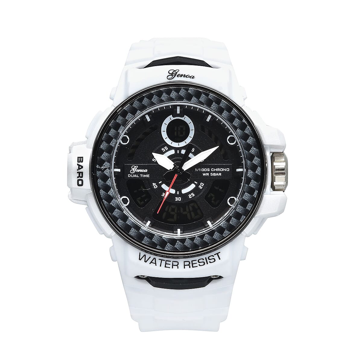 Genoa Miyota Japanese and Electronic Movement Multi Functional Watch with White Strap (44.70mm) (7.5-9.0 Inch)
