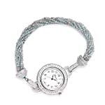 This Genoa Miyota Japanese movement bracelet watch features a multi-strand design, elegantly adorned with beads that shimmer with movement. Powered by the reliable Japanese movement, this watch offers precise timekeeping alongside its striking aesthetic. Its unique bracelet style merges the functionality of a watch with the allure of fine jewelry.