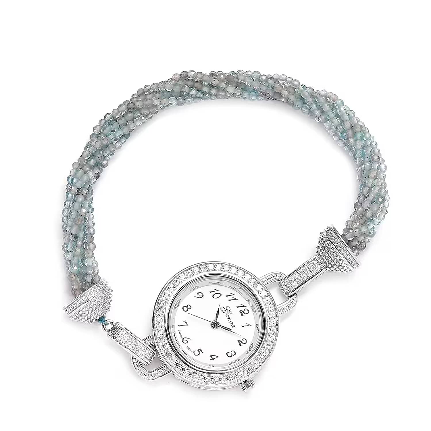 Genoa Miyota Japanese Movement Apatite, White Zircon 61.00 ctw Beaded Multi Strand Bracelet Watch (8.0 in)