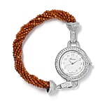 GENOA Miyota Japanese Movement Natural Thai Black Spinel, Natural White Zircon Beaded Multi Strand Bracelet Watch (7.00 In) 71.00 ctw