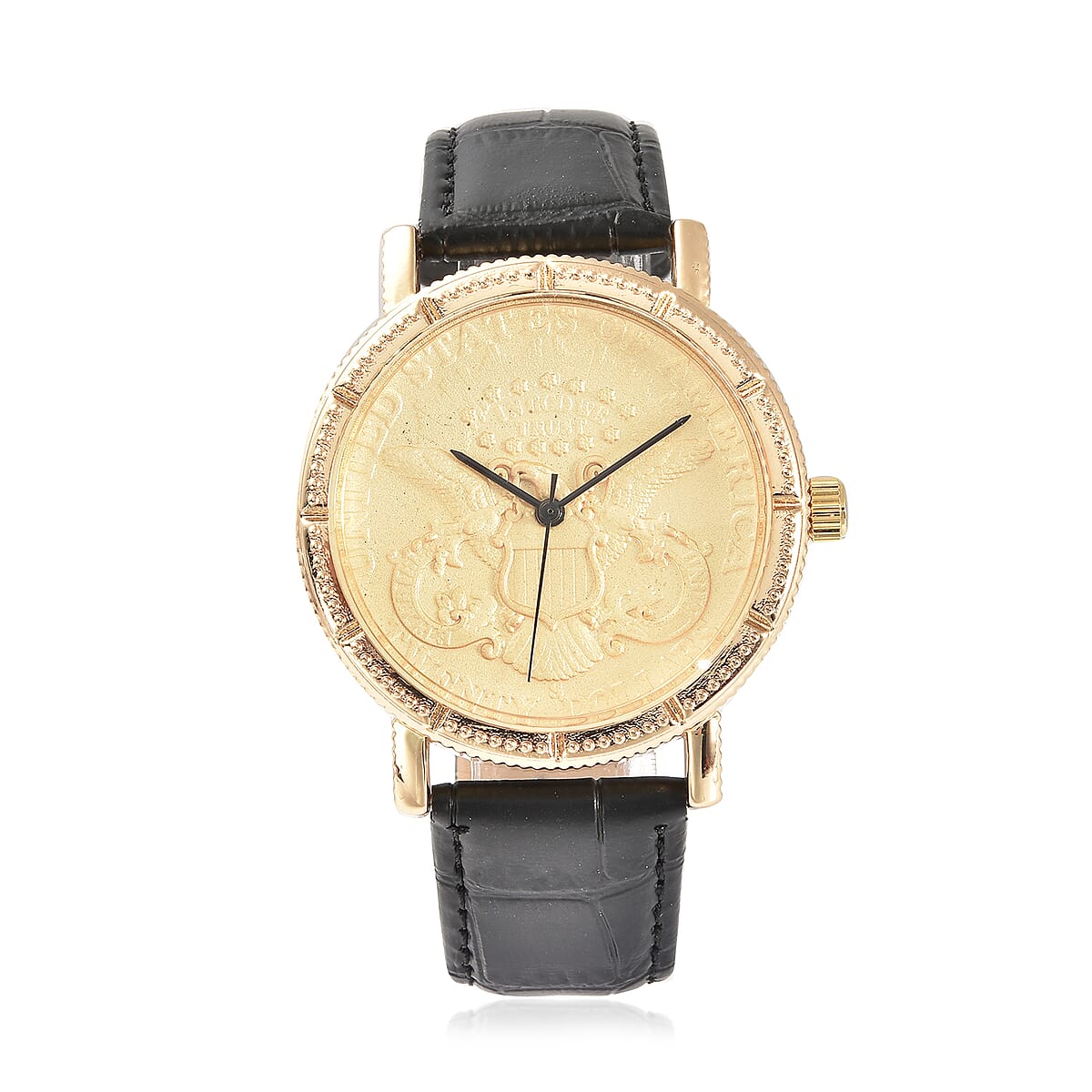 Genoa Miyota Japanese Movement Replica Coin Double Eagle Pattern Watch with Black Genuine Leather Band (40mm)
