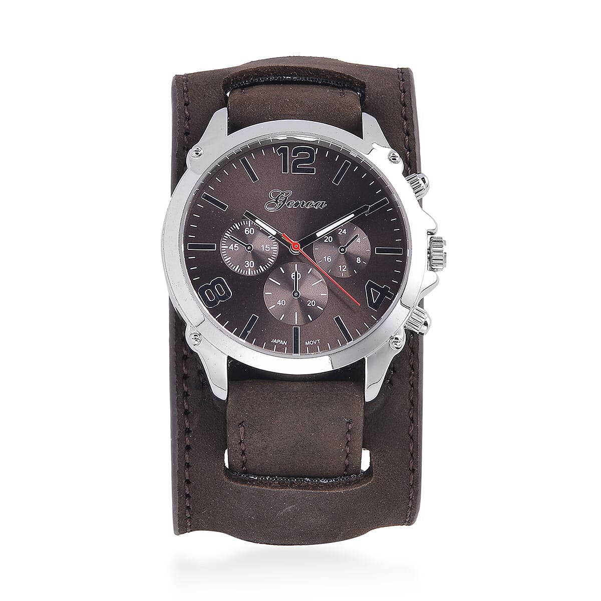 Genoa Miyota Japanese Movement Watch with Coffee Genuine Leather Strap