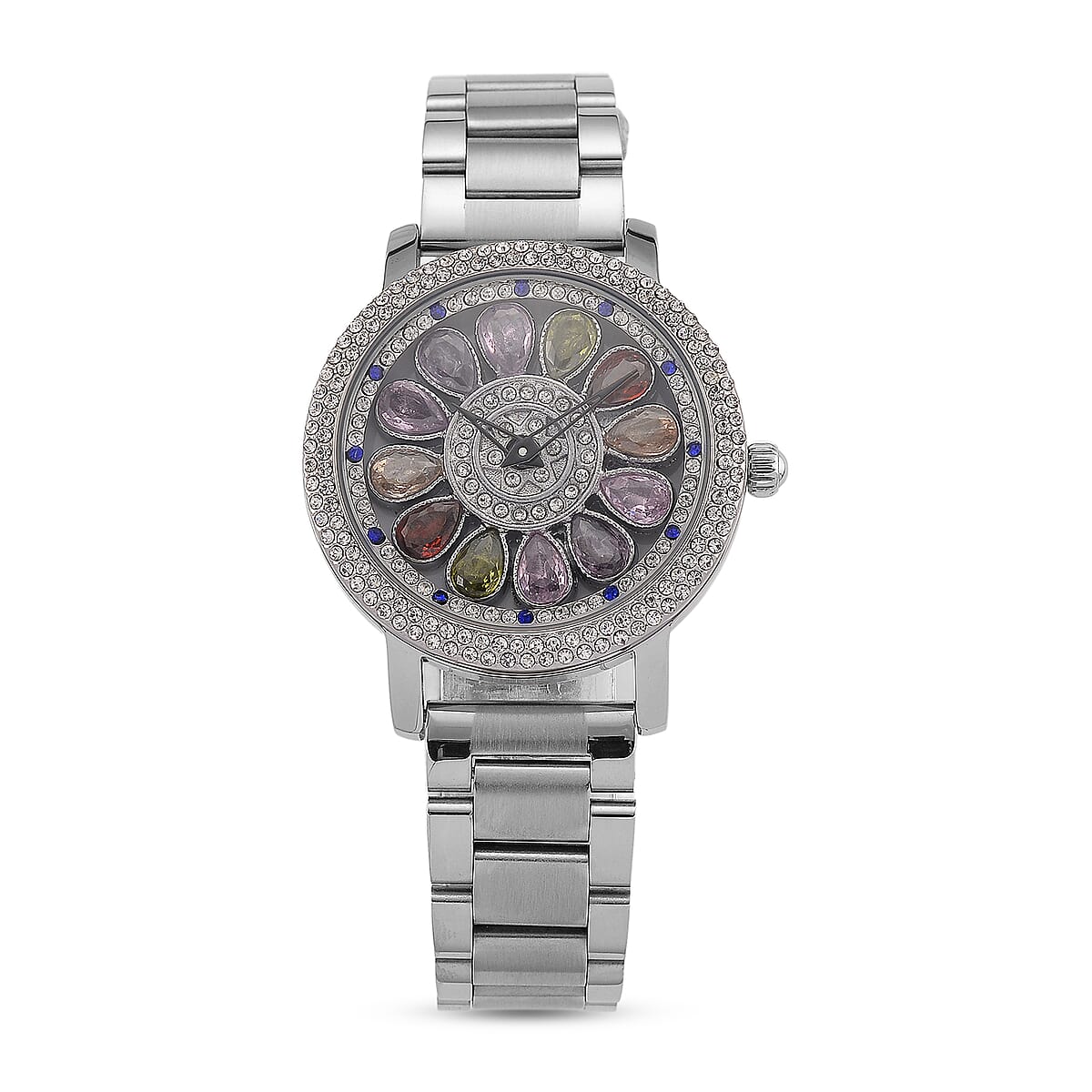 Genoa Multi Color Glass Japanese Movement Watch in Silvertone