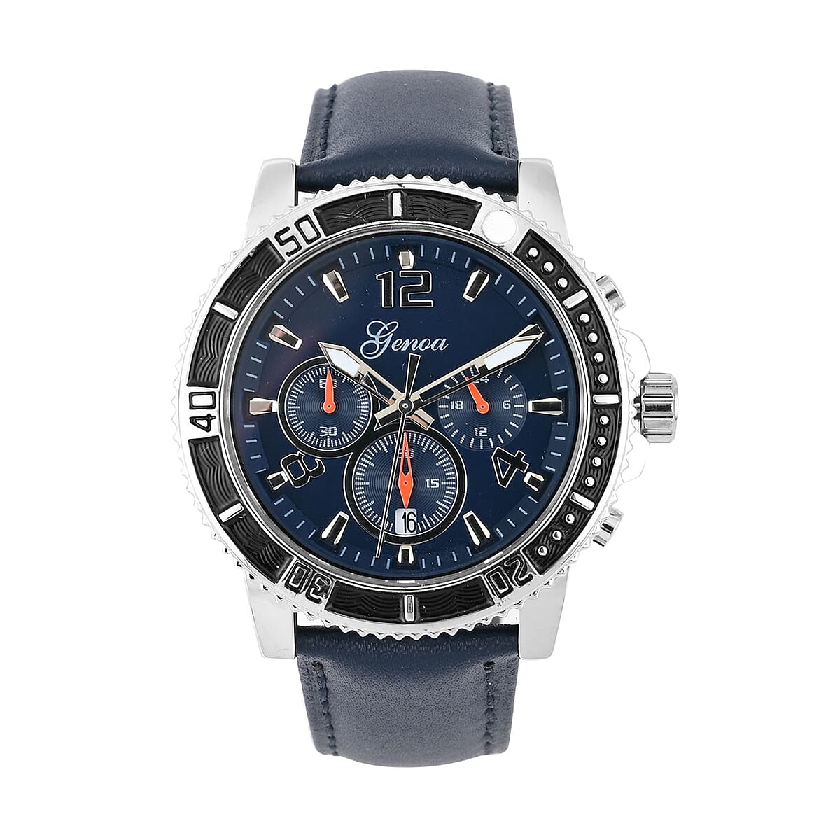 Genoa Multifunctional Quartz Movement Watch with Navy Blue Line and Leather Strap (45mm) (8.0-9.25Inches)