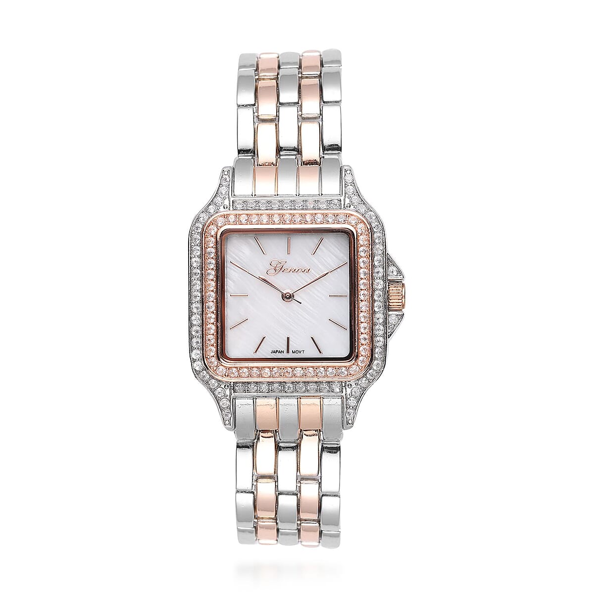 Genoa Simulated Diamond Miyota Japanese Movement White MOP Dial Watch in Dualtone Strap (33.27mm) (6.0-7.75 Inch) 1.75 ctw