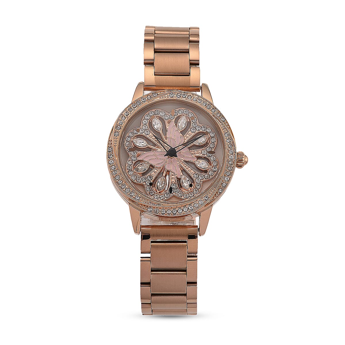 Genoa White Glass Japanese Movement Butterfly Enamel Watch in Rosetone