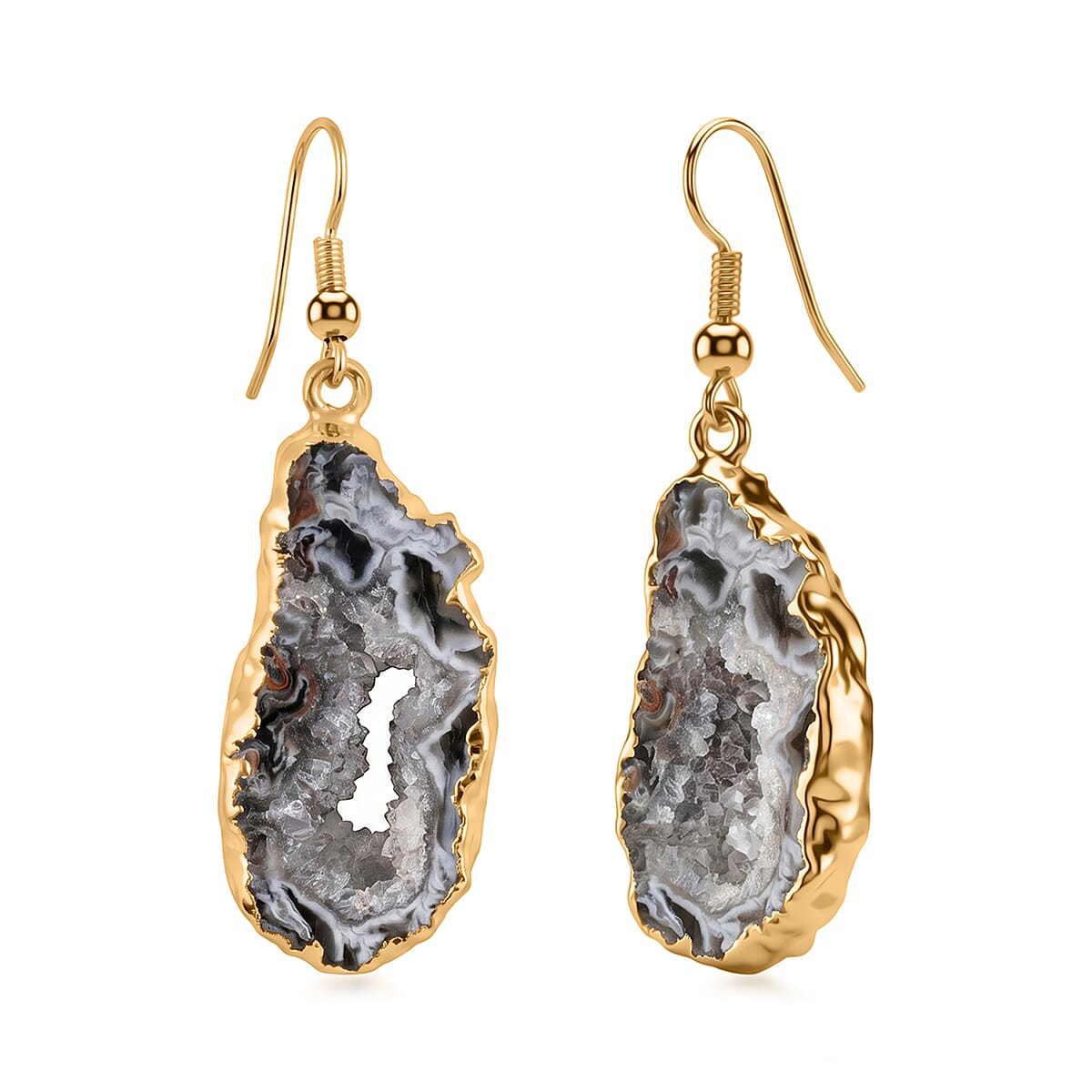 Geode Slice Quartz 30.00 ctw Earrings in Goldtone