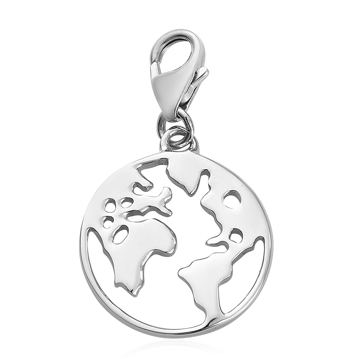 Globe World Map Platinum Over Sterling Silver Charm