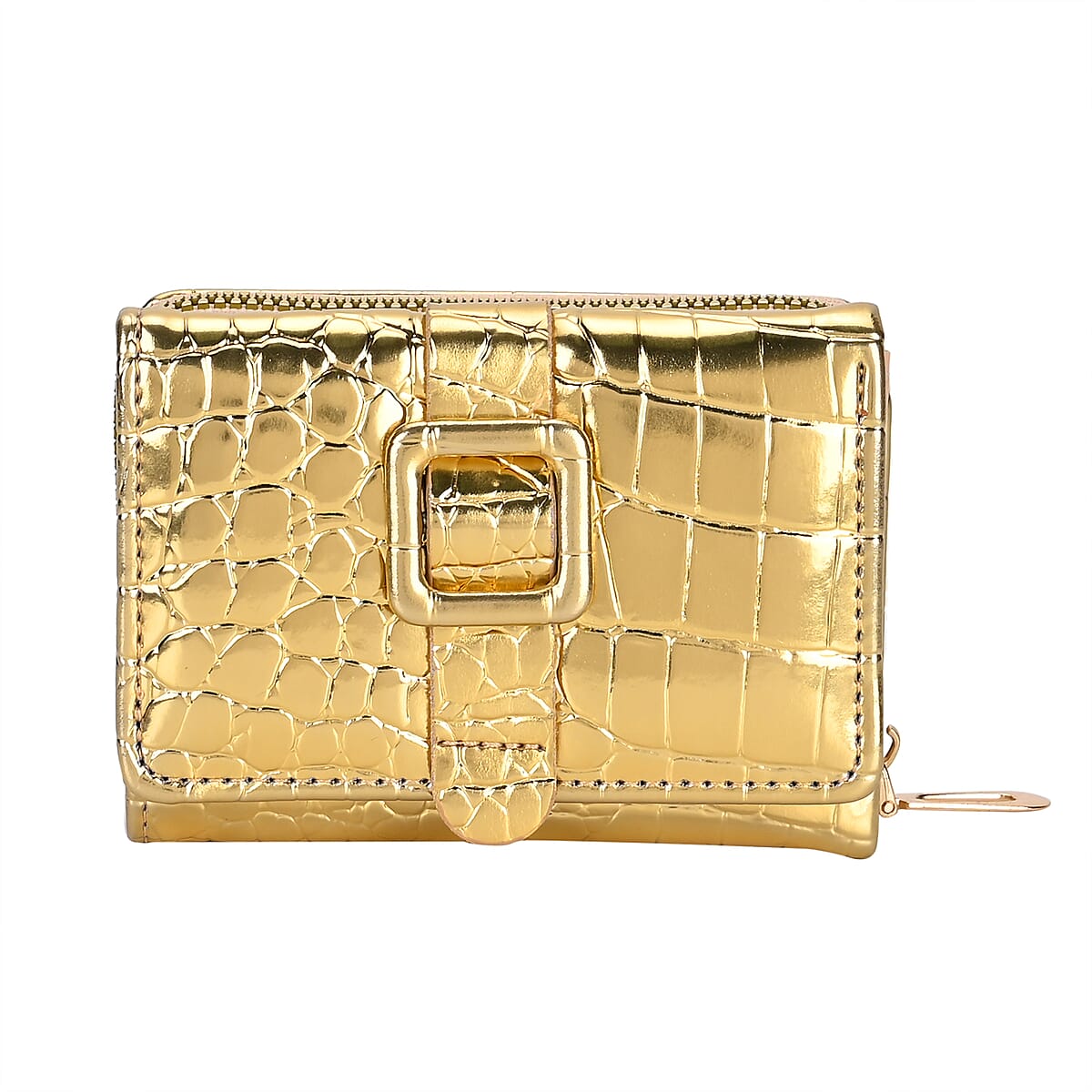 Gold Crocodile Embossed RFID Protected Faux Leather Wallet (4.3"x3.2")