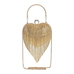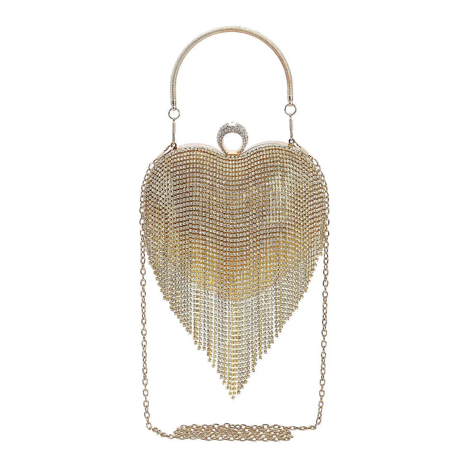 Gold Heart Shape Tassel Clutch Bag for Women with Handle and Removable Chain Strap , Women Purse , Designer Bags , Ladies Purse , Handbags for Women