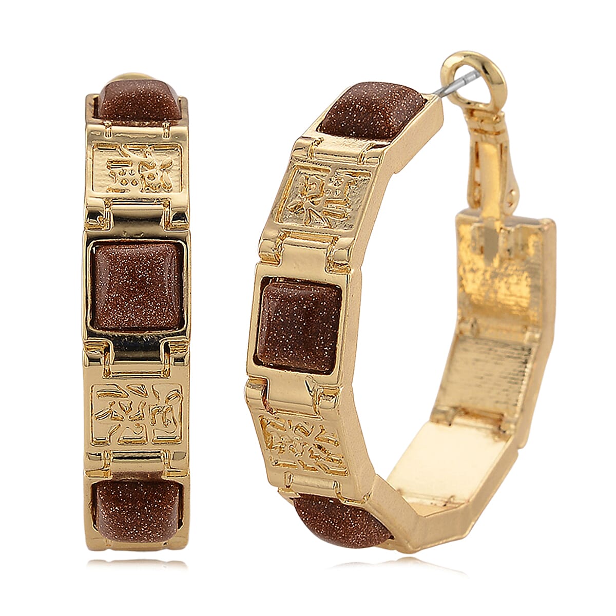 Gold Sandstone 5.00 ctw Hoop Earrings in Goldtone