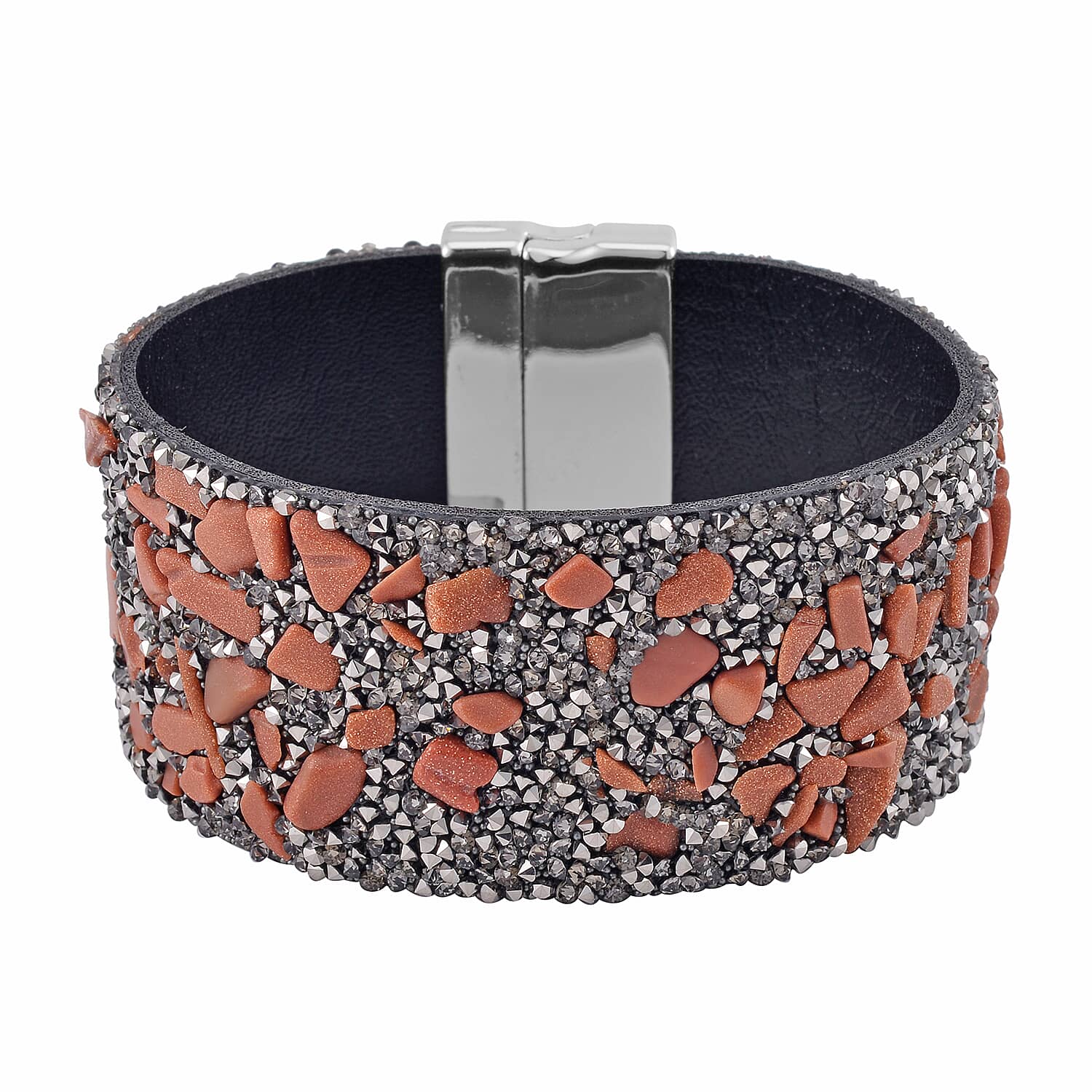 Unveil the allure of our gemstone and Austrian Crystal bracelet, a harmonious blend of nature's beauty and artisanal craftsmanship. This exquisite piece features a magnetic clasp on durable metal with a silvertone finish, effortlessly marrying the raw elegance of gemstones with the refined sparkle of Austrian crystals.