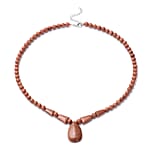 Gold Sandstone Beaded Tribal Necklace 18-20 Inches in Silvertone 132.00 ctw