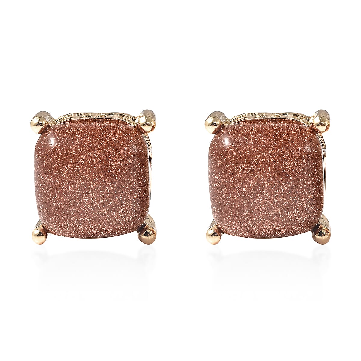 Gold Sandstone Button Shape Stud Earrings in Goldtone 2.00 ctw