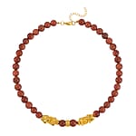 Gold Sandstone Pixiu and Beaded Necklace 18-20 Inches in Goldtone 325.00 ctw