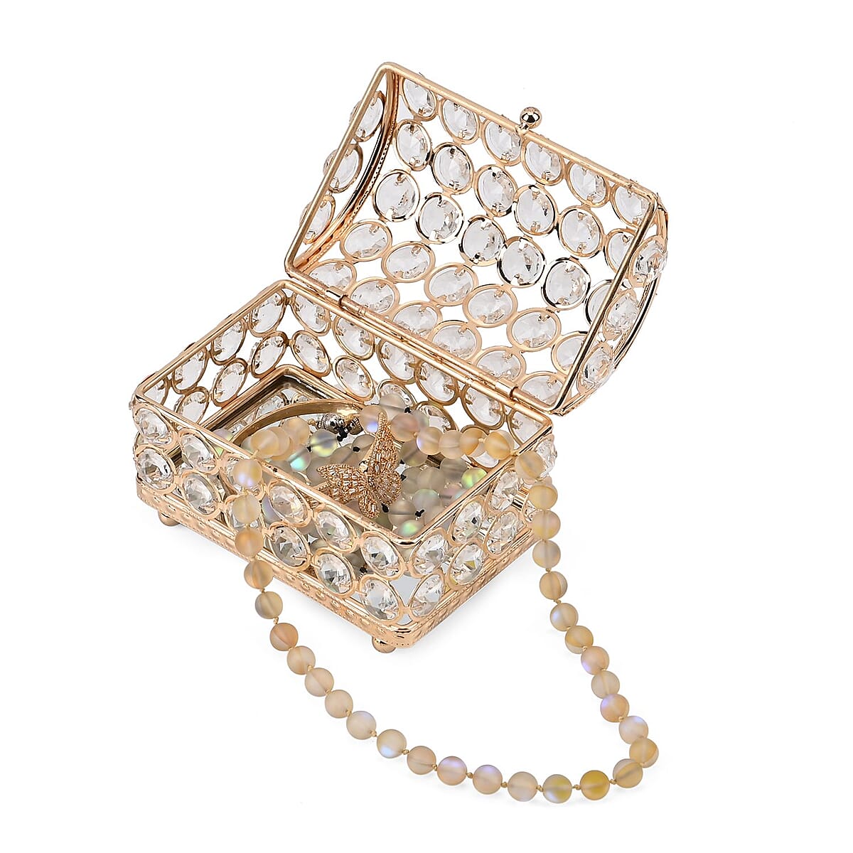 Golden Color Arch Design Crystal Jewelry Box, Trinket Organizer Treasure Box For Rings Earrings Necklace, Jewelry Storage Box (5.1x3.1x3.5)